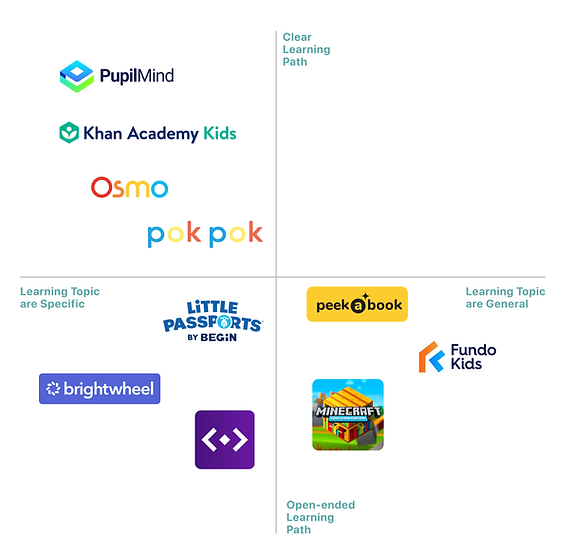 We then analyzed four products positioned closer to the center of the axis, representing diverse product types, to identify effective features and current trends in educational platforms.
